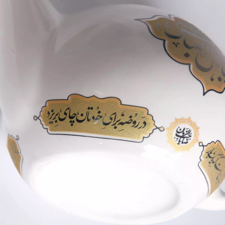 این قوری با 2 رنگ سفید و طلایی از جنس چینی می باشد و از بهترین مدل های قوری مذهبی است.