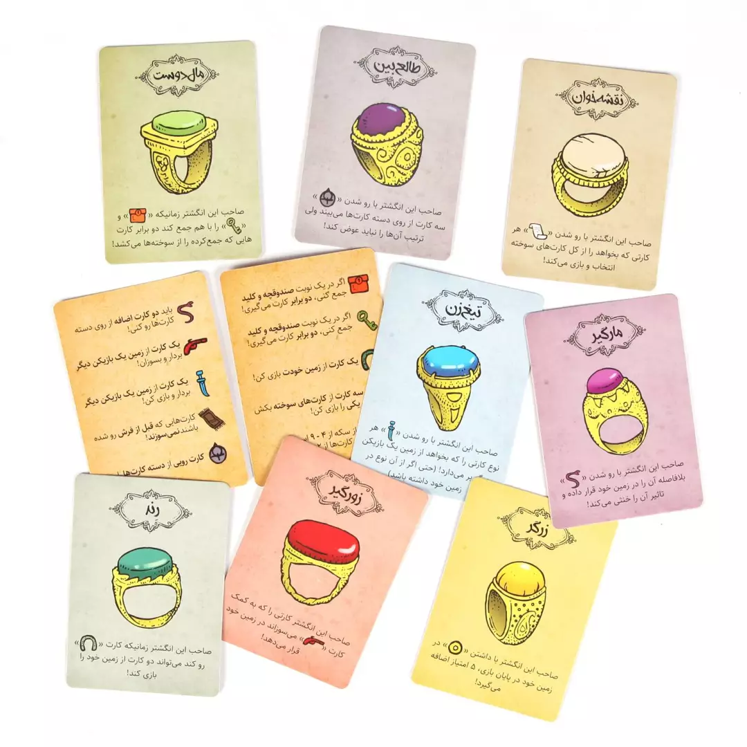 ۲ تا۴ نفره ۱۵ دقیقه زمان بازی در پایان بازی هر بازیکن بالاترین عدد هر نوع کارتش را با هم جمع میزند و بازیکنی که بیشترین امتیاز را داشته باشد برنده بازی میشود. همچنین هر کارت که در بازی رو میشود قابلیتی دارد که به محض رو شدن اعمال میش.د. مثلا تپانچه به بازیکن اجازه میدهد کارت یک بازیکن دیگر را بسوزاند. یا با خنجر میتوان از کارت بازیکن دیگری استفاده کرد و غیره